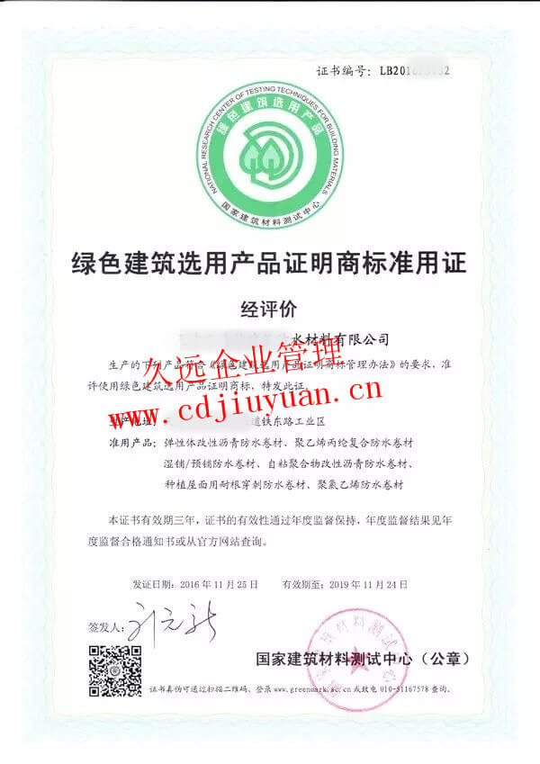 中國環(huán)境標志產品II型認證證書(十環(huán)II型)
